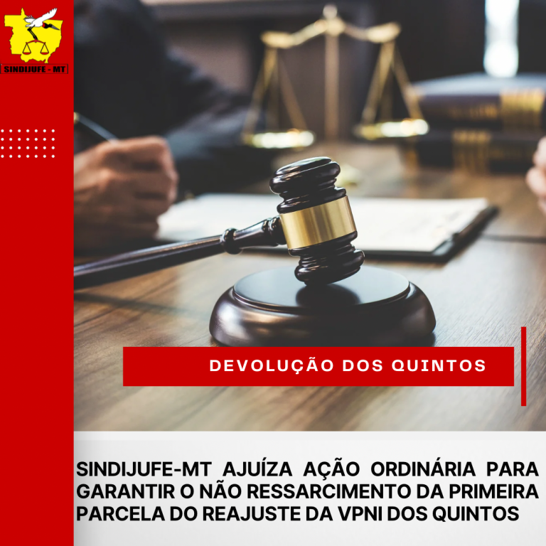 SINDIJUFE-MT AJUÍZA AÇÃO ORDINÁRIA PARA GARANTIR O NÃO RESSARCIMENTO DA PRIMEIRA PARCELA DO REAJUSTE DA VPNI DOS QUINTOS 21 de novembro de 2025 Nenhum comentário Leia mais »