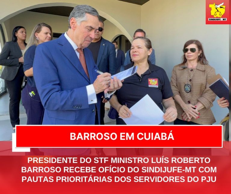EM CUIABÁ, PRESIDENTE DO STF RECEBE OFÍCIO DO SINDIJUFE-MT COM PAUTAS PRIORITÁRIAS DOS SERVIDORES DO PJU 19 de agosto de 2025 Nenhum comentário Leia mais »