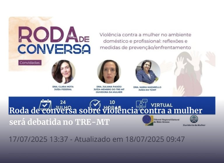 TRE-MT PROMOVE EVENTO PARA DEBATER VIOLÊNCIA CONTRA MULHER 22 de julho de 2025 Nenhum comentário Leia mais »