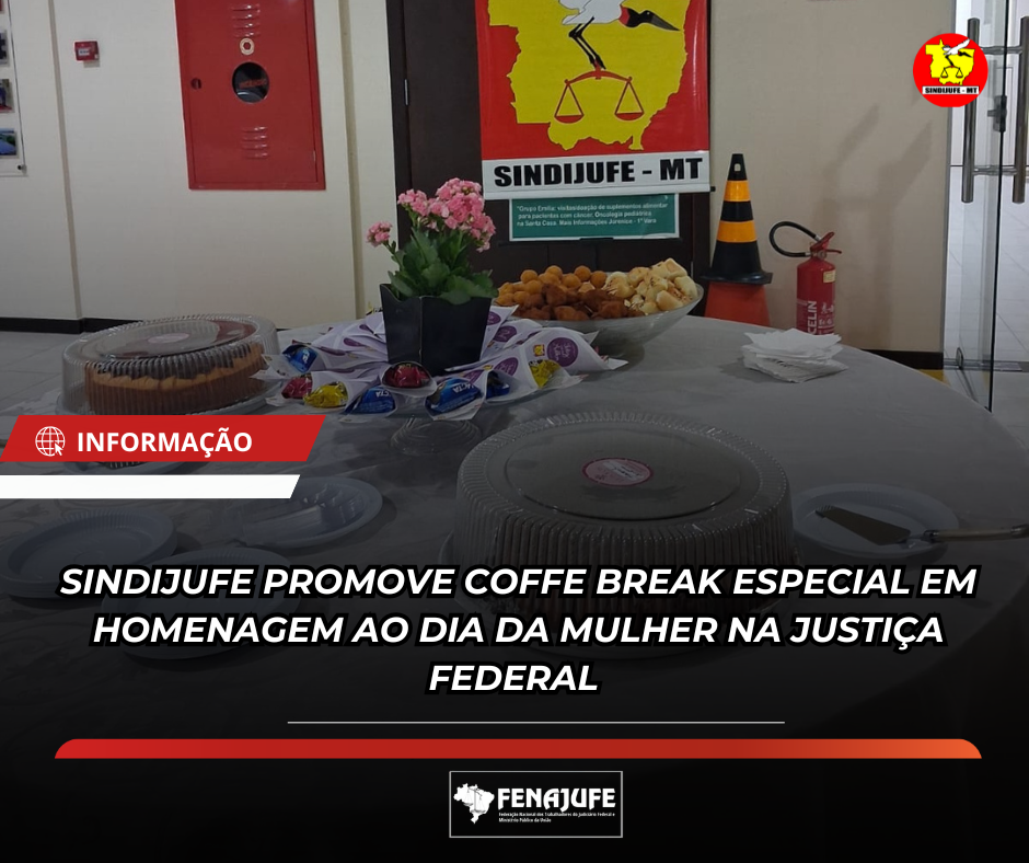 Em celebração ao Dia Internacional da Mulher, o Sindicato dos Servidores do Judiciário Federal em Mato Grosso (Sindijufe-MT) promoveu, na última terça-feira (10), um coffee break especial para as servidoras e servidores da Justiça Federal. A confraternização ocorreu logo após uma palestra voltada ao fortalecimento e valorização das mulheres no ambiente de trabalho.