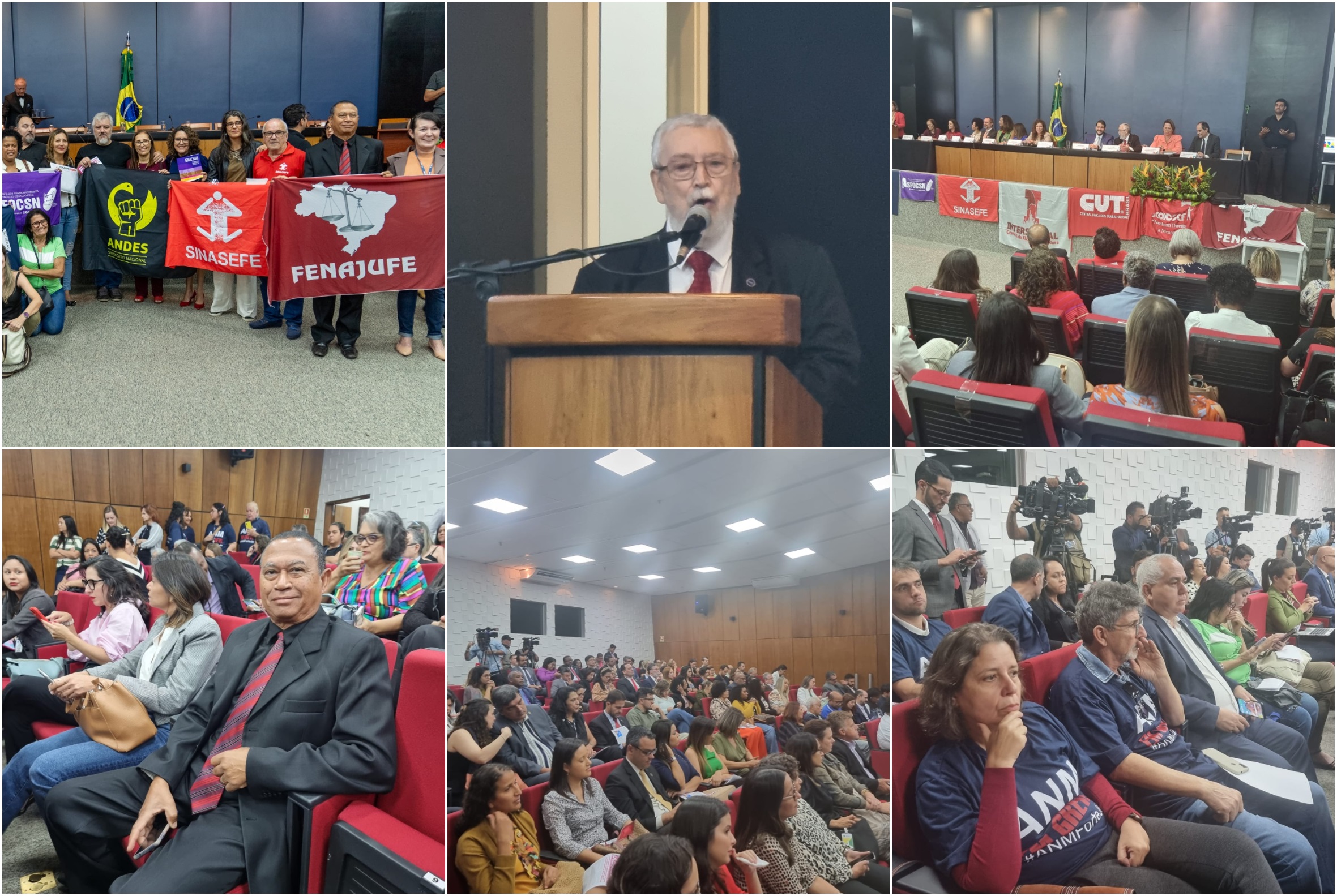 O coordenador Paulo José representou a Federação. Além da Fenajufe, várias outras entidades representativas do serviço público como Andes, Fasubra, Sinasefe, Condsef, Fenasps e Centrais sindicais, entre outras, também participaram da cerimônia.