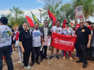 O Sindicato dos Servidores do Poder Judiciário Federal em Mato Grosso (Sindijufe-MT) esteve presente na mobilização, reforçando seu compromisso com a defesa dos direitos da classe trabalhadora. A entidade foi representada pela coordenadora Juscileide Maria K. Rondon e pelo diretor Luís Cláudio, que participaram da caminhada e dialogaram com outras organizações sindicais e movimentos sociais.