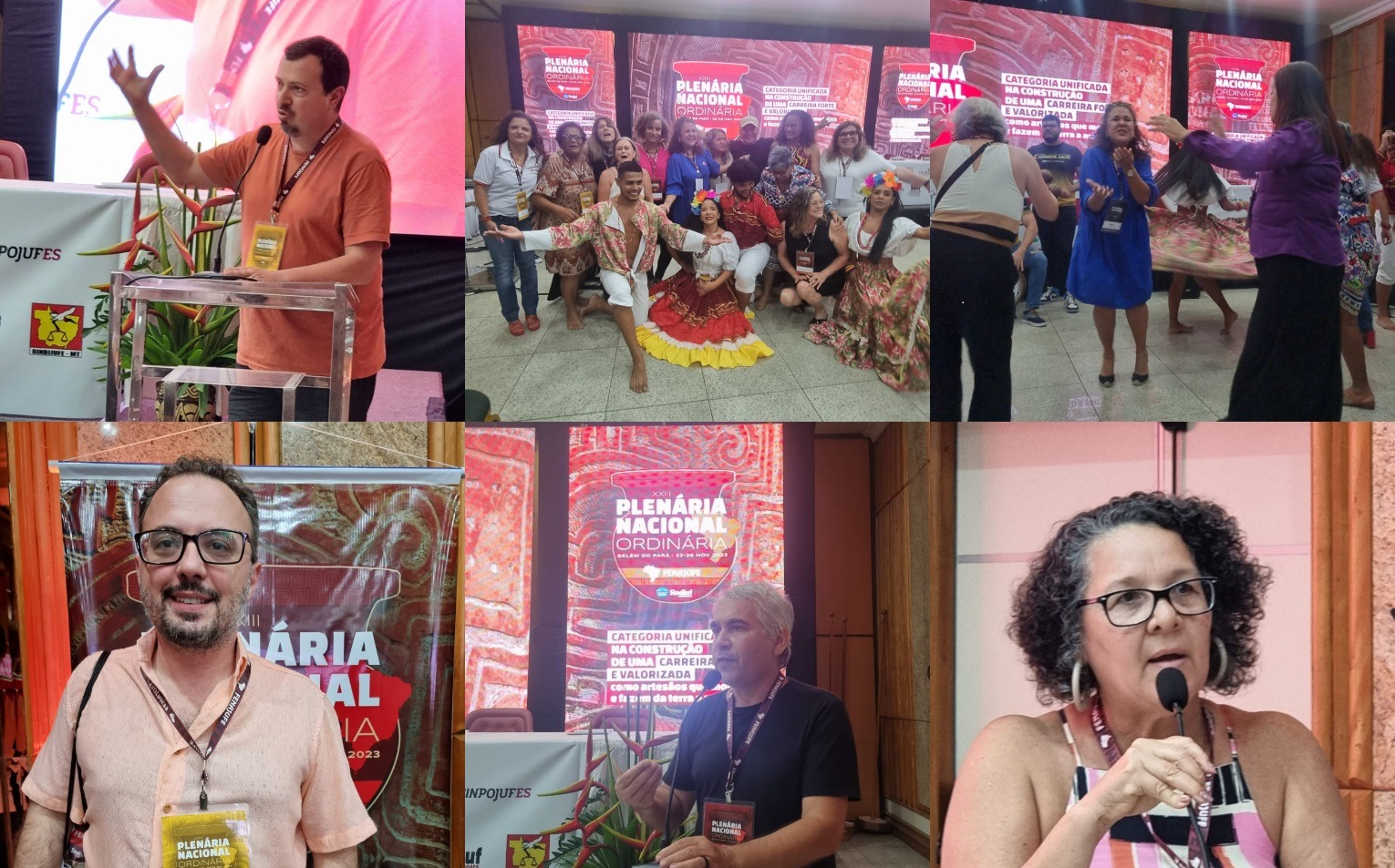 Numa demonstração de unidade e força, com a participação de 25 Sindicatos de base, a Fenajufe iniciou os trabalhos da XXIII Plenária Nacional na noite desta quinta-feira (23), em Belém do Pará. A energia contagiou delegados(as) e observadores(as) já no início do evento com a apresentação de carimbó com grupo Carimbolando.