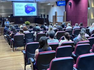 A palestra foi conduzida pela servidora Kelly Cristina E. Ferreira, praticante de meditação há 25 anos, que destacou a importância de pausar a rotina e voltar a atenção para o equilíbrio emocional. “A meditação nos leva a um lugar sagrado, onde podemos cultivar a saúde mental, prevenir doenças e aumentar a resiliência”, afirmou. Durante o evento, os participantes vivenciaram uma prática guiada.