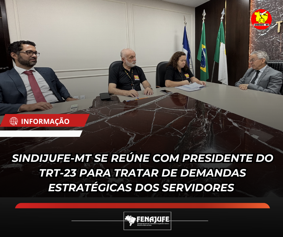 Na última quarta-feira (11), os diretores do Sindicato dos Servidores do Poder Judiciário Federal em Mato Grosso (Sindijufe), Juscileide Maria K. Rondon e Walderson Oliveira, acompanhados do advogado da entidade,