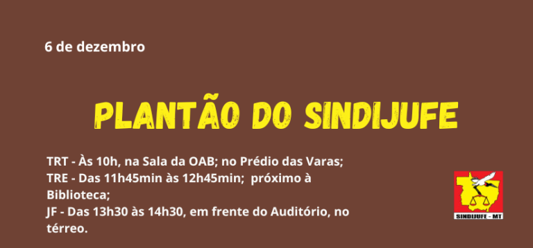Hoje é quarta-feira 6 de dezembro, dia de Plantão do Sindijufe 6 de dezembro de 2023 Nenhum comentário Leia mais »