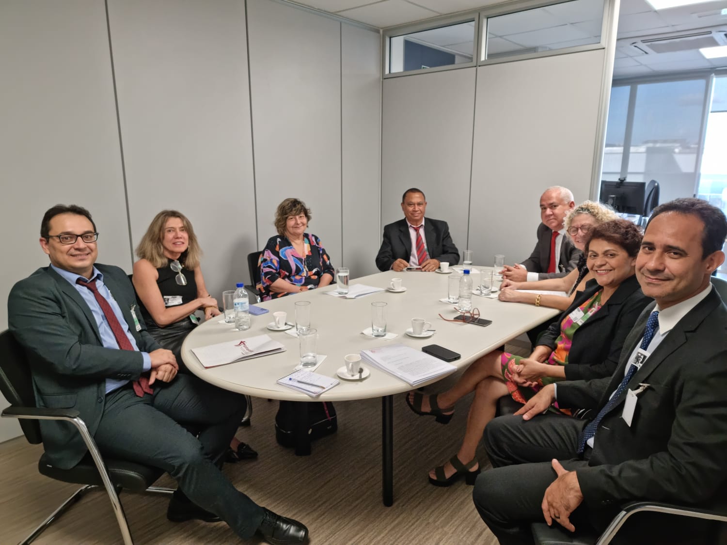 Participaram desta reunião as coordenadoras da Federação Lucena Pacheco e Soraia Marca; os coordenadores de plantão Paulo José e Manoel Gerson, além do coordenador Roberto Policarpo e os representantes do Sisejufe/RJ, Eunice Barbosa e Valter Nogueira.