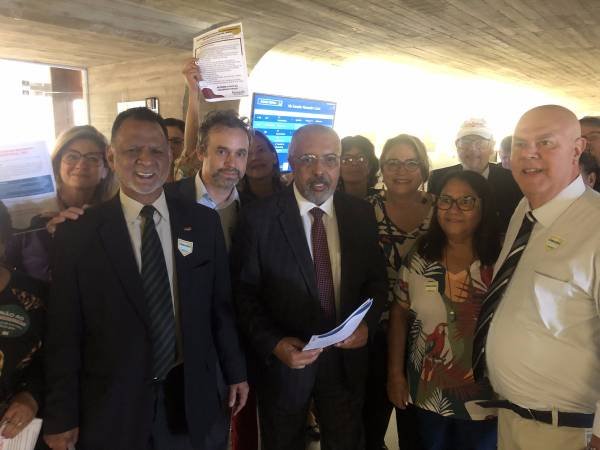Representantes do Sitraemg apresentam o projeto pela data-base ao senador Paulo Paim (PT-RS)